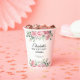 Stylish rustic pink roses, feminine floral 90th birthday party table decorations - name personalized paper cups.