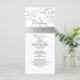 Elegant, modern boho, rustic, chic black and white wedding program with vintage silver floral lace and string lights.