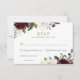 Floral Elegant Burgundy White Magnolia Wedding RSVP Respond Card