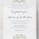 Floral Elegant Dusty Blue Crest All in One Wedding Invitation. White Flowers Greenery Wedding Crest. Traditional Wedding Invitation All in One Template