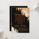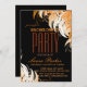This is a orange red floral boarder invitation card for wedding bachelorette party with a elegant appearance on black surface with vintage font of sea green colour.