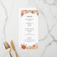Elegant botanical Menu features cute watercolor flowers in shades of orange, red, yellow, and peach, with green leaves, combined into a beautiful bouquet.
