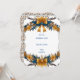 This elegant wedding invitation design features a striking combination of gold and blue floral elements against a sophisticated black background. The intricate floral arrangement showcases a variety of flowers and foliage in rich gold tones and vibrant blue hues, creating a visually stunning contrast. Perfect for a luxurious and memorable wedding, this design exudes opulence and style, setting the tone for an unforgettable event.