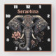 Floral elephant artwork square wall clock