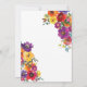 Quinceañera invitation with fiesta colour watercolor flowers and and a girl in a beautiful matching gown adorned in Mexican embroidery.