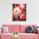 A vivid close-up of blooming peonies and roses, showcasing soft flowing petals in shades of pink, peach, and white against a dark background. This beautiful floral artwork brings life and elegance to any room.