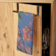 The abstract floral design by ZoeSPEAK on this Kitchen Towel was created from Zoe’s original photograph of a flowering tropical tree. The tree has thin black branches which form a linear pattern across the background. There are very few leaves on the tree, but there are plenty of tiny flowers in pompom clusters on all of the branches. The photo was taken looking up into the branches, with the sky as the background. In this version, the background is bright sky blue, and the flowers are shades of pink. The design has a canvas texture overall.