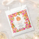 A little pumpkin is on the way! Celebrate your baby shower this fall autumn cute orange baby pumpkin with a pacifier and floral watercolor frame with bright pink and orange flowers thank you baby shower favour bag.