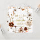 Floral Fall In Love Boho Wreath Bridal Shower Invitation. Rustic, neutral and elegant bridal shower invitation featuring hand painted watercolor fall leaves and flowers fall wreath in terracotta, beige, cream and brown with golden "fall in love" wording and fall floral pattern in the back. Please get in touch via chat if you need customisation or matching items.