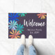 This cute floral themed doormat features colourful daisy designs and a welcome and family established message for your visitors on a dark background. This is a fun design, and you can make a custom message if you'd like to edit the mat using the personalisation tool in the listing.