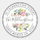 Easily personalise these modern envelope seals featuring a watercolor floral bouquet with pink flowers and green leaves with a handwritten script font for your family name and round text curved over the top displaying your return address details.