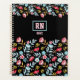 Floral Feminine Black Pink Blue Colourful Monogram Planner
