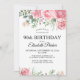 Floral feminine pink flowers 90th birthday party invitation