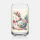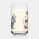 Floral Folk Bird with Pastel Boho Charm Can Glass