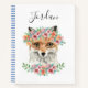 This design features watercolor portrait of a fox wearing a halo of flowers.