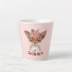 Cute baby fox with a flower arrangement on his head and a colourful butterfly. The background is pink with dots. Optional monogram