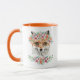 This design features watercolor portrait of a fox wearing a halo of flowers.