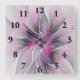 Floral Fractal Modern Abstract Flower Pink Gray Square Wall Clock