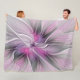 Floral Fractal Modern Abstract Flower Pink Grey Fleece Blanket