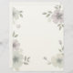 A soft and elegant floral border design featuring pastel flowers in shades of lavender, cream, and pale sage. The blossoms are placed gracefully in each corner, leaving the centre open for text or artwork. Gentle green leaves and subtle shading create a balanced, airy composition