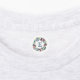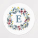 Floral framed monogram clothing labels in greys, blues, yellow and pink on a white background.