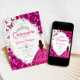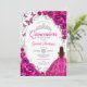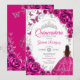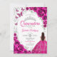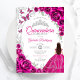 Floral Fuchsia Pink Silver Quinceanera Invitation