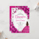 Fuchsia pink silver and white floral Quinceanera celebration invitation. Features brunette girl in ball gown dress, script font, silver butterflies, watercolor roses and tiara. Perfect for an elegant princess style glam celebration. Personalize with your own details. Printed Zazzle invitations or instant download digital printable template.