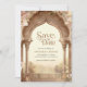 Amaze your guests with this elegant wedding save the date featuring beautiful elephants and vintage arches.