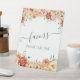 Beautiful Floral Favour Pedestal Sign With a delicate pattern of flowers in warm orange, cream, and yellow hues complemented by green leaves, this sign adds a touch of natural elegance to any event. Let it elegantly direct your loved ones to their tokens of appreciation.