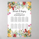 A floral garden and bouquet flowers design. This Spring and floral garden greenery design incorporates different colour blossoms such as pink, red, blue, yellow, burgundy and white. An elegant botanical illustration of Spring and Summer flowers ideal for any wedding. This flower illustration design creates an elegant rustic floral country garden feel. Elegant wedding seating chart design with modern elements. Matching wedding invitations and other stationery items are also available.