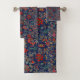 Floral Garden in Reds on Dark Blue Background Bath Towel Set