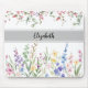 Simple and elegant design with flowers hanging on top and reaching from the bottom with your name band in between, displayed on a white background.