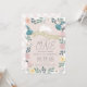 This cute " some bunny is turning one " girl's 1st / first birthday invitation card features a blush pink background with jumping white bunny surrounded by flowers and greeneries. The reverse side features a white background with handpainted check patterns in pink. Personalise it for your needs. You can find matching products at my store.