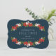 This corporate design features a navy blue background with traditional red, green and white holiday florals. The backside of this design allows for you to include your company logo as well as a custom message to your customers!