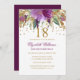 Floral Glitter Sparkling Amethyst 18th Birthday Invitation
