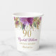 Floral Glitter Sparkling Amethyst 90th Birthday Paper Cups