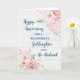 Happy wedding anniversary card for goddaughter and her husband with beautiful watercolor vintage flowers, rustic wood and sentimental verse.