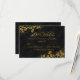 Gold Fabulous Birthday RSVP. Elegant sparkle flowers on black damask. Please note: All flat images!