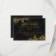 Gold Fabulous Birthday RSVP. Elegant sparkle flowers on black damask. Please note: All flat images!