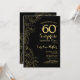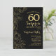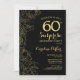 Floral Gold Black Surprise 60th Birthday Party Invitation. Elegant design featuring botanical accents and typography script font. Feminine invite card perfect for a stylish womens surprise bday celebration. Personalise with your own details. Can be customised to any age. Printed Zazzle invitations or instant download digital printable template.