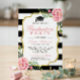 Floral Gold Black White Stripes Graduation Party Invitation