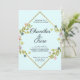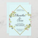 Introducing our stunning pale blue floral wedding invitation, featuring a beautifully designed gold geometric diamond wrapped in delicate green, blue, purple, and pink flowers and greenery. This invitation is the perfect choice for couples who want to showcase the beauty of nature while maintaining a minimalist aesthetic.