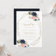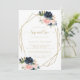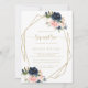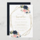 This floral gold geometric sip and see invitation is perfect for a rustic meet the baby party. The design features beautiful hand-painted dark blue, blue, navy, pink, blush, gold flowers and green foliage, adorning a geometric frame.
