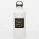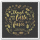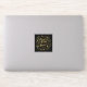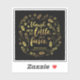 Sticker featuring the quote from William Shakespeare’s A Midsummer Night’s Dream “Though she be but little, she is fierce” surrounded by flowers and leaves in faux gold foil against a black background.