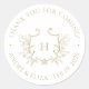 Elegant Floral Crest Wedding Thank You Stickers. Monogrammed initial framed by elegant hand illustrated vintage crest in gold, simple but sophisticated style. Perfect choice for modern, classic, simple formal weddings.