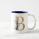 Floral Gold Navy Blue Leaves Monogram Personalised Two-Tone Coffee Mug
