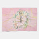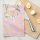 Floral Gold Script Monogram Pink Geode Agate Tea Towel
