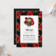 Crimson red , black and gold gothic online long distance virtual wedding ceremony invitation featuring a skull decorated with red roses and a dramatic rose pattern.