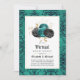 Teal, turquoise, black and gold gothic online long distance virtual wedding ceremony invitation featuring roses and a distressed grunge victorian damask pattern.