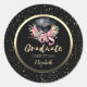 Floral Grad Cap Pink Bow Confetti Classic Round Sticker